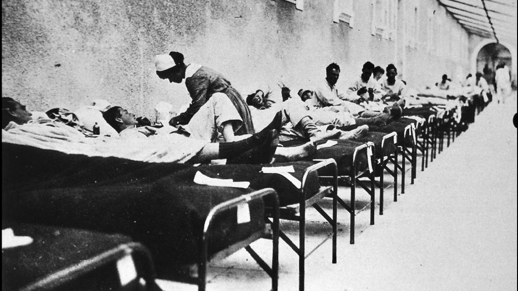 The sheets were bloody, they always were. No matter how many times they were changed, the blood kept oozing, dripping from their ears and noses. The young nurse would wipe it, but it continued to trickle over their cheeks where mahogany spots had appeared. She knew in days the spots would disappear, blending into their faces that would turn dark blue from lack of oxygen. In this pre-antibiotic era, death was imminent. All she could do was keep wiping, trying to make them comfortable, until the fluid in their lungs suffocated them.