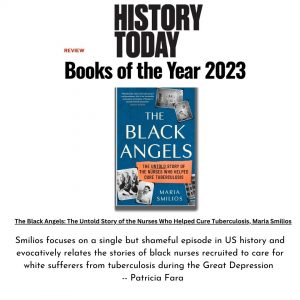 “With a detective’s tenacity, Maria Smilios pays tribute to the Black Angels, that compassionate cadre of nurses whose meticulous record keeping helped buttress the clinical trials that led to a pivotal breakthrough in the treatment of tuberculosis. She weaves their personal journeys with their professional devotion to the indigent, incurable patients whose care became their cause even as they were unwelcome in most American hospitals because of their race.”